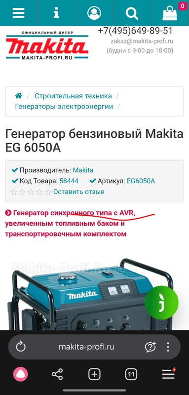 Вот с сайта Макита : Бензиновый генератор Makita EG 6050A с АВР