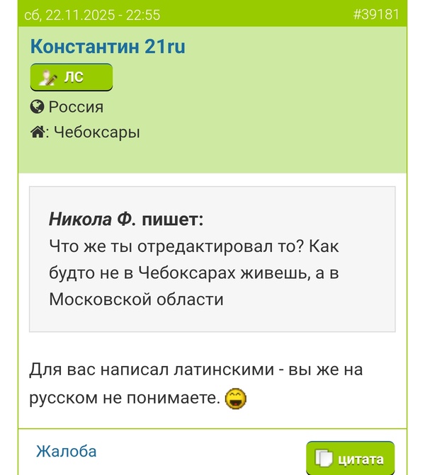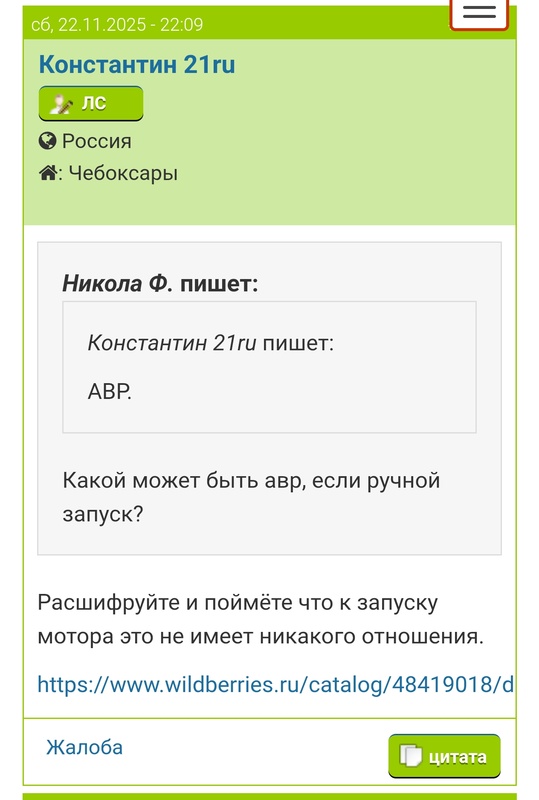 А ты, третий день опой виляешь, 100500 сообщений нафигачил, всех вокруг обвинил во всех смертных грехах, вместо простейшей фразы...