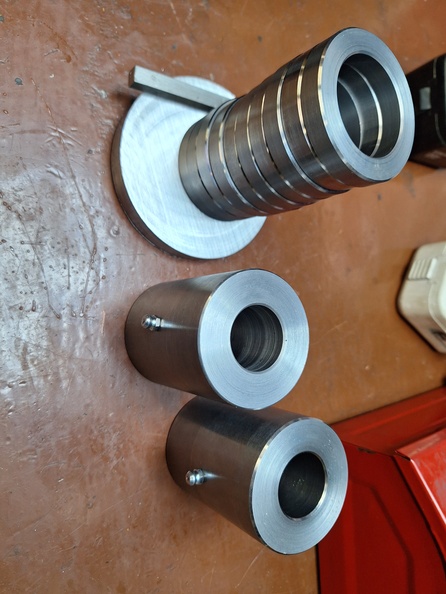 Наточили немного втулок. Ещё по божески 1000р. за работу и 500 за металл. Попутно собираю металл на ковш с гидроцилиндром и быстросъемом. Буду ещё заказывать на подъёмный стол втулки и пальцы на ковш. Есть возможность выточить пальцы на ковш из нержавейки,как думаете не хуже будут ходить чем из чернины? И как будет сопряжение нержи и чернины,втулка из ст20???