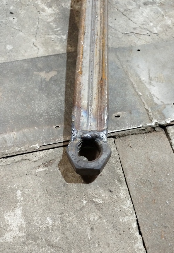 Пруток грел на прицепе, а на Эксе варил и обстукивал по пару см за раз. Приварил посередине от верха и низа гайки и профиля.