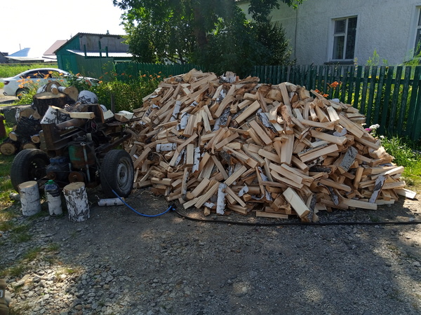 Вот привезли мне дрова, по заказу одни комли. На горизонтальном тяжело одному ворочать, на вертикальном было бы легче.