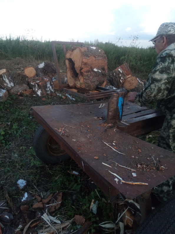 И теперь думаю про вертикальный дровокол со столом. Не удобно очень. Особенно когда спил не ровный. Через середину бывает что 12 тонн не хватает расколоть.