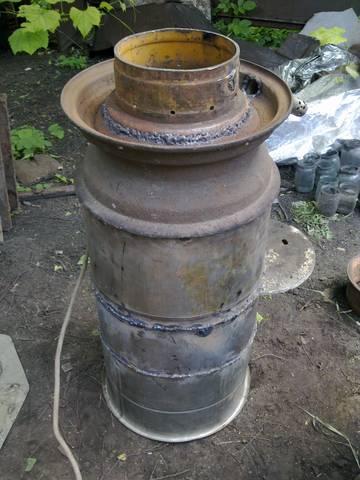 Привет всем! Можно и я положу своих 5 копеек. В этом году, за лето почти сделал газогенератор и пиролизный котел на дровах, для отопления дома, но застала зима, не успел провести испытание, оставил все до лета. Все размеры и расчеты я взял с книги Токарева , ( 66 страничка ,19таблице газ 42) . Все материалы я взял из домашнего металлолома, который у меня валялся лет 20, хорошо что не сдал на металлом , с дисков получились хорошие конуса, и как раз подошли по диаметру до бачка со стиральной машины, диски толстостенные. Может кому пригодится. Найдите видео на ютубе евгеній івасенко, там он очень хорошо рассказывает и дает видео про пиролизные котлы и газогенераторы которые он сам делает, и может дать чертеж . Он фурмы не ставить а просто делает отверстие, по его совету я так и сделал.