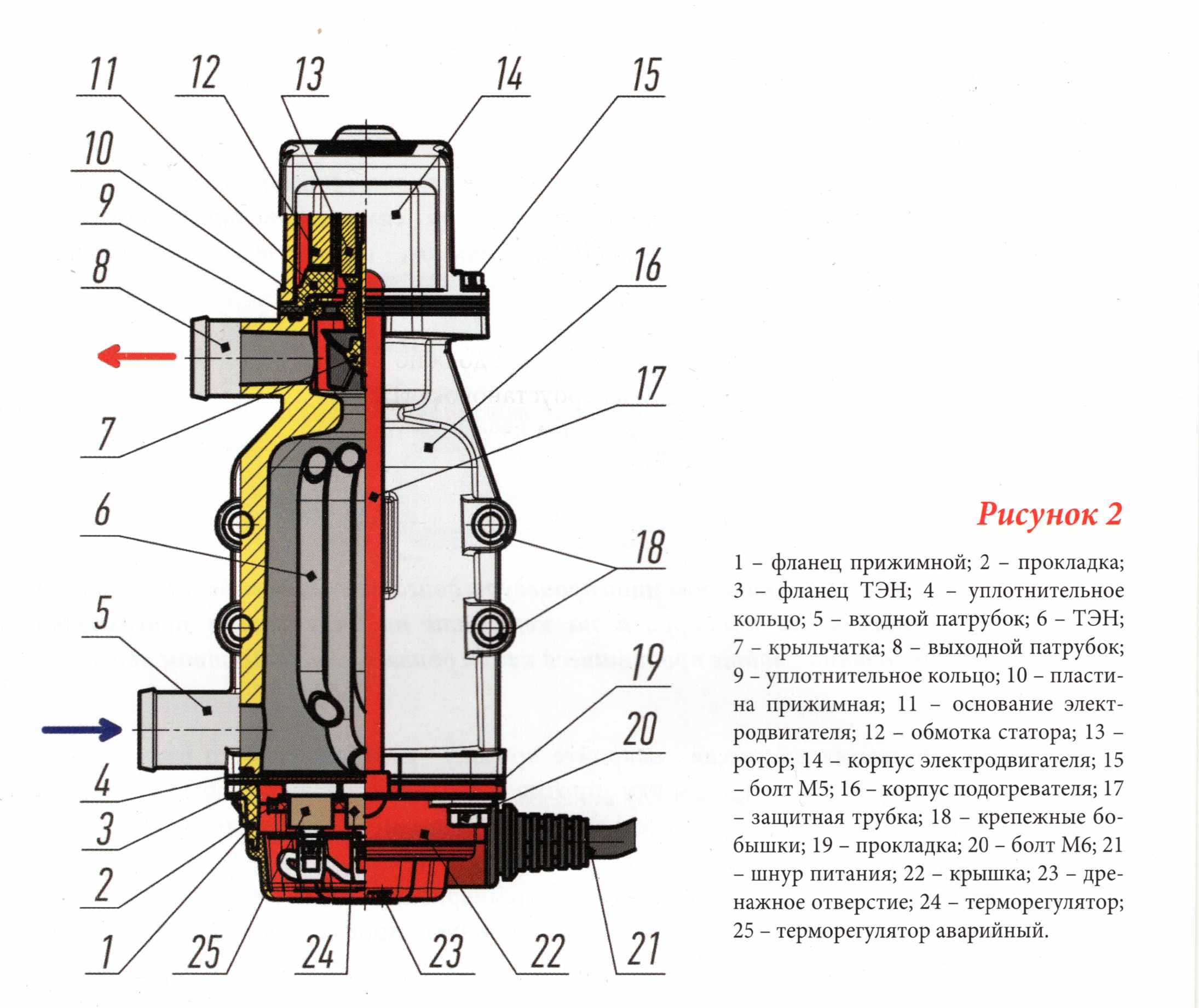 Так в обязательном случае размещение подогревателя данной конструкции вертикально и на оптимальной высоте. Его помпа и эл.двигатель только вверху (при нештатном выбросе охлаждающей жидкости с верхней зоны двигателя, где больше всего такой возможности, жидкость охлаждающая сохранится в объеме двигателя ниже помпы. Предусмотрено наличие двух терморегуляторов - рабочего и аварийного с несколько различными уставками температуры ( учитывая случаи залипания (сварки) в эксплуатации контактов регулятора). ТЕН подогревателя обязали иметь необходимой площади с допустимой удельной мощностью (мощность на единицу площади). Испытания и ужесточение состава и качества материала оболочки (корпуса) подогревателя. И т д. Как в любом изделии, здесь свой букет нюансов и особенностей.