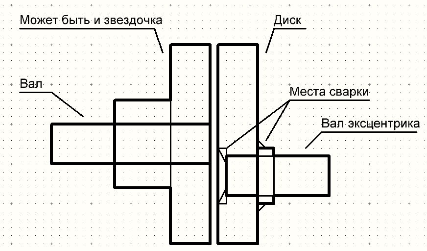Извините,с утра не смог отправить фото.Андрей6319 нарисовал точно,я лишь не стал сверлить отверстие под вал.Надеюсь на фото понятно.Сварку ни разу не отрывало.При необходимости срезал пластину болгаркой и приваривал снова изменяя ход грохота.