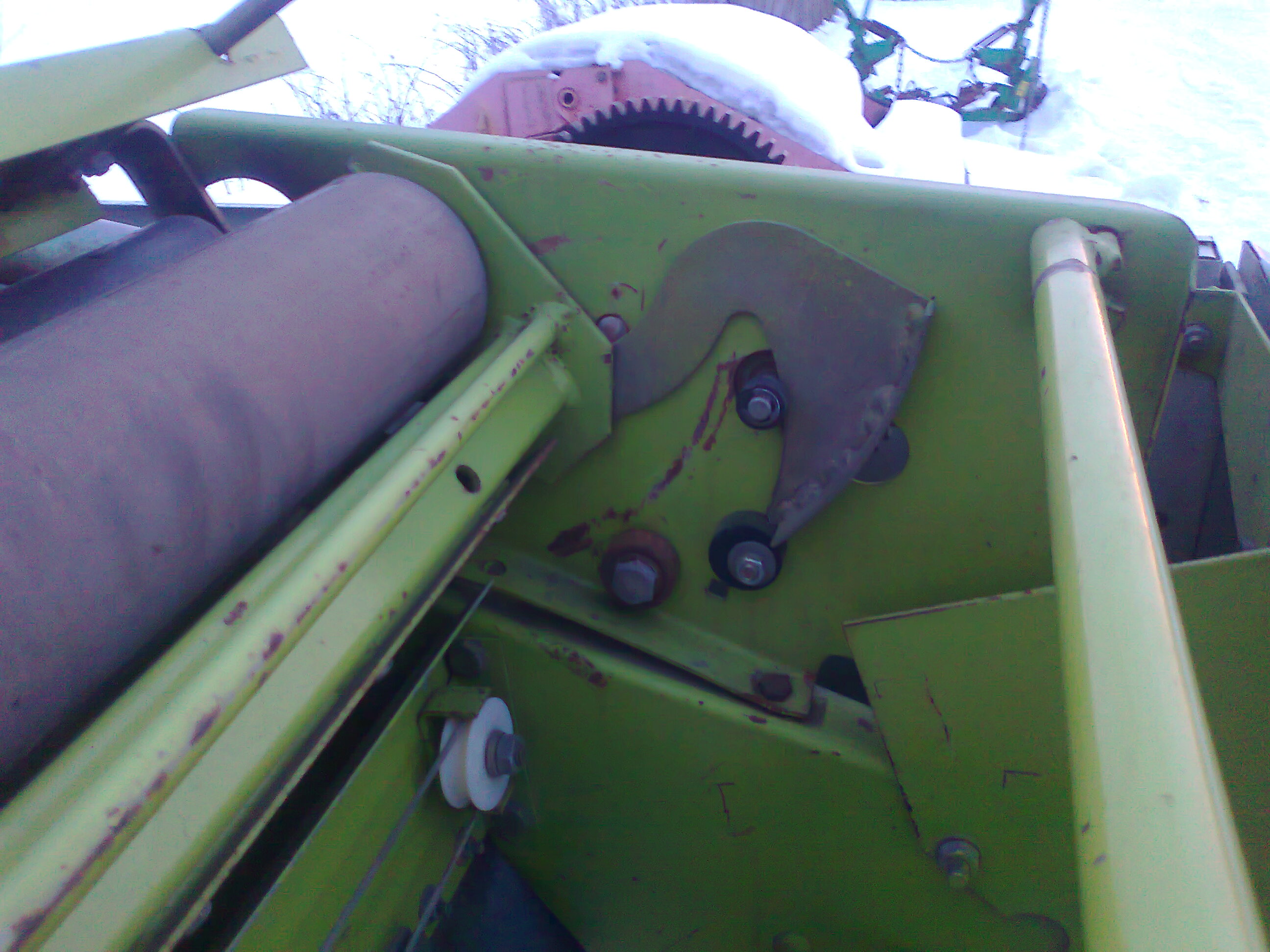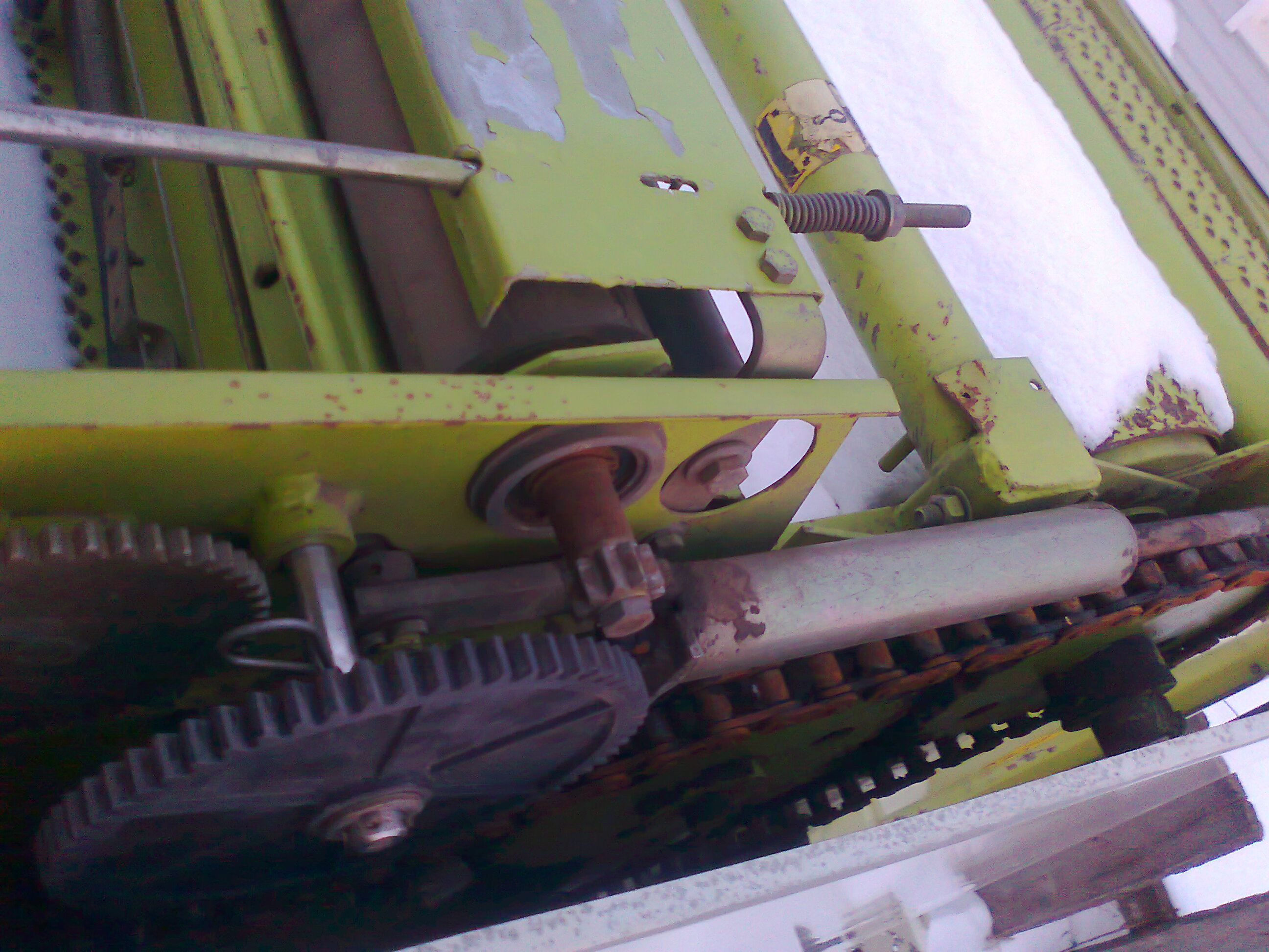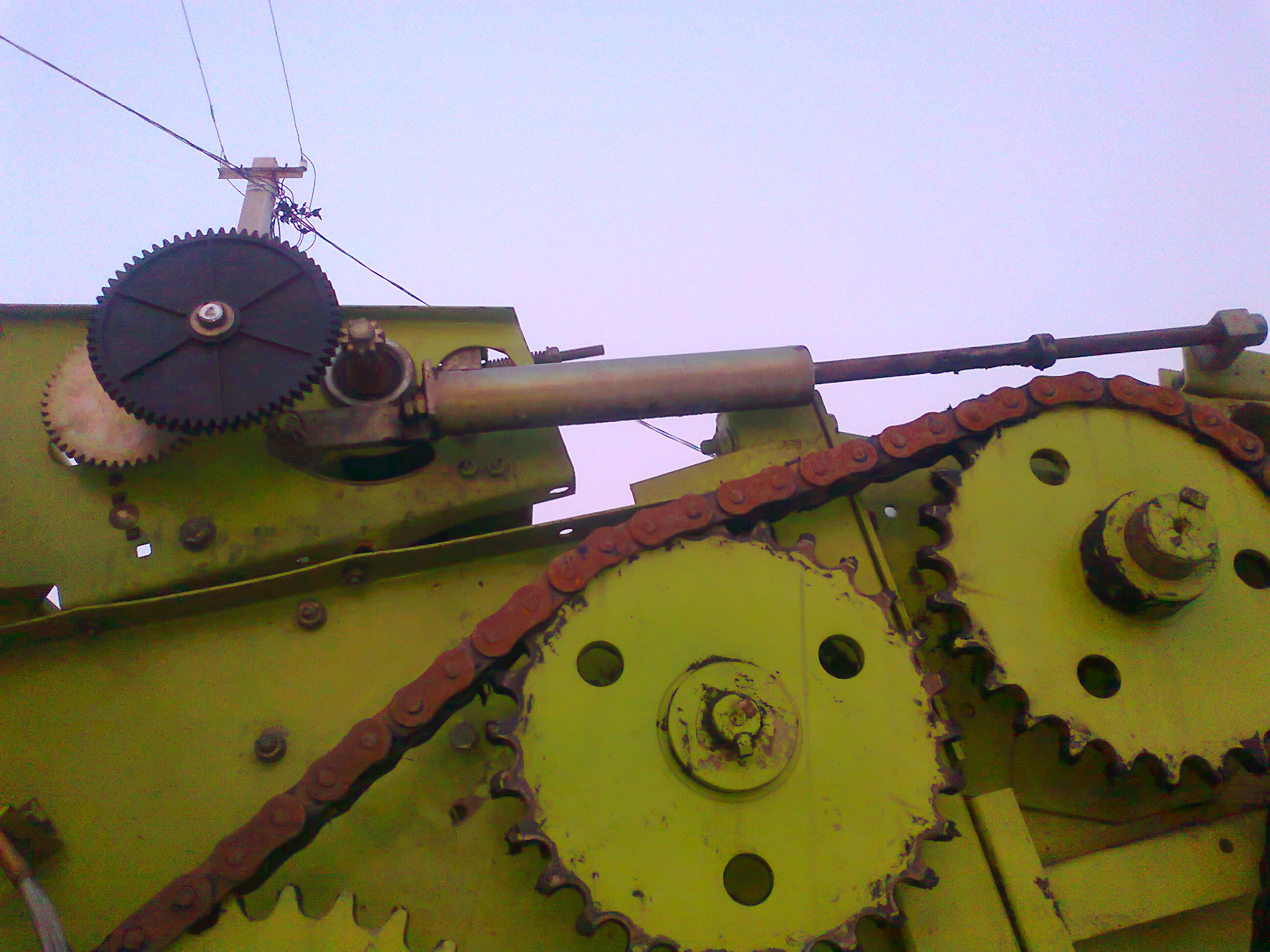 Привод от барабана там шкивок не видно его а завязка от зеленого шкивка наполовину видно который там два провода подходят наверно муфта какая то эл.магнитная и крутит подачу сетки и потом сетка захватывается сеном и быстрее мотает а чтобы не было несоответствия скорости там шкивок на интересном подшипнике стоит он в одну сторону крутится а в др нет. Вот когда сетка пошла шкивок не цепляет вал а просто крутится как обгонная муфта.