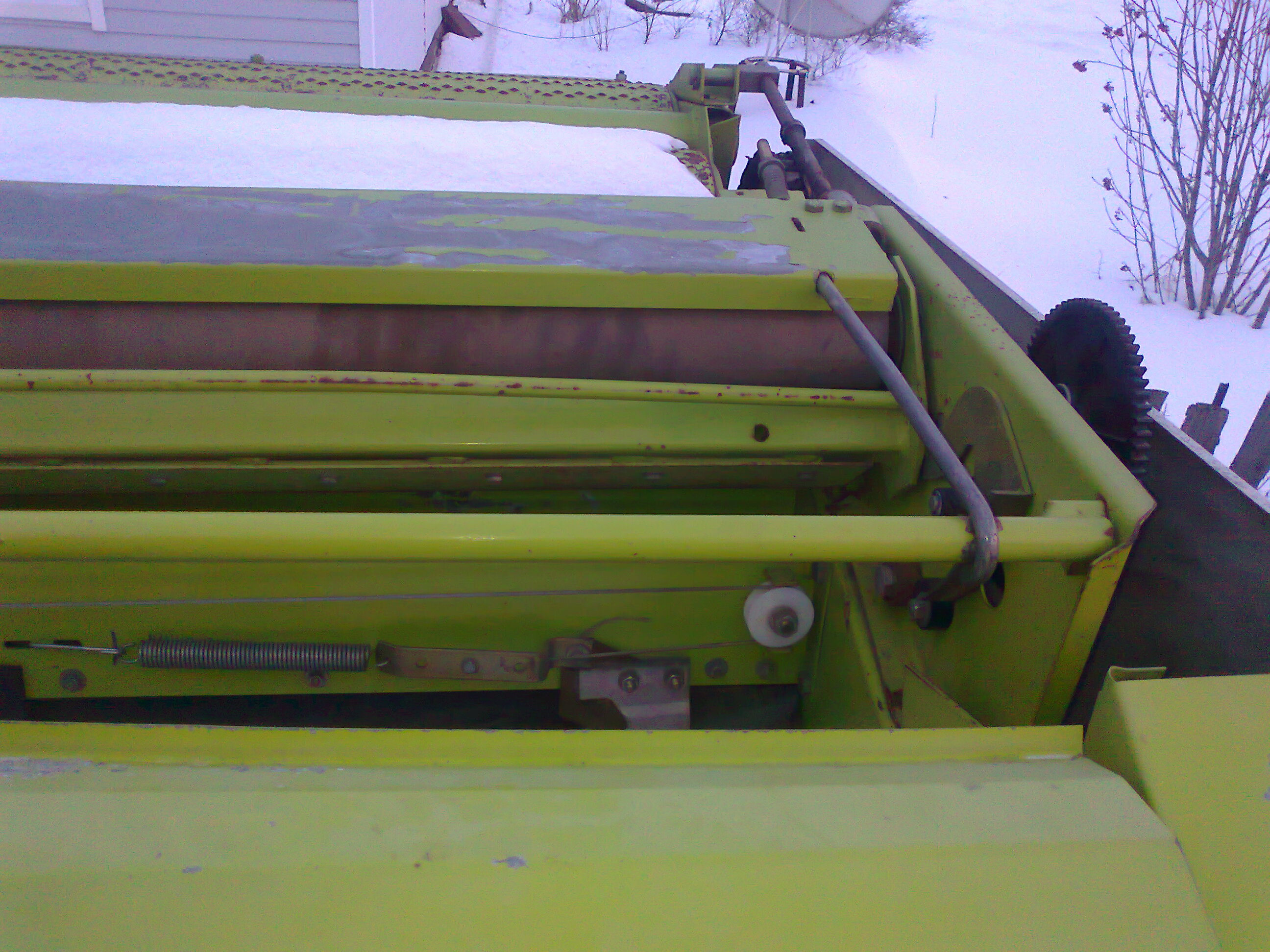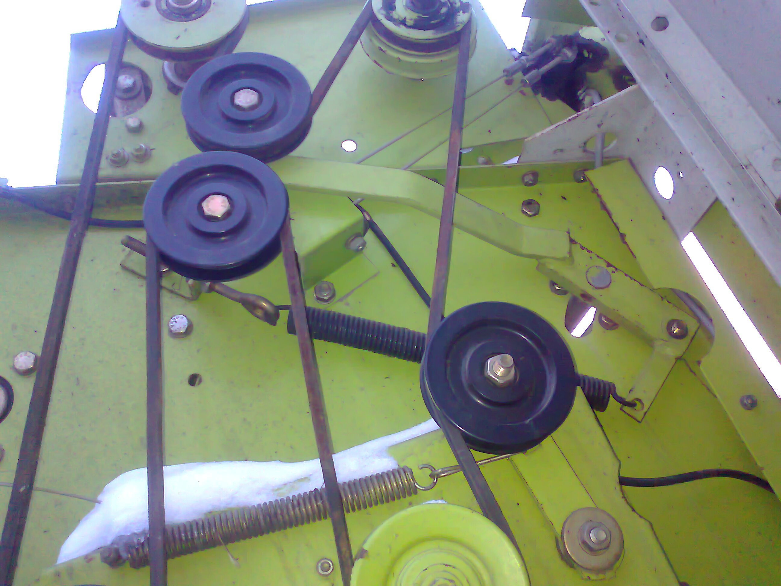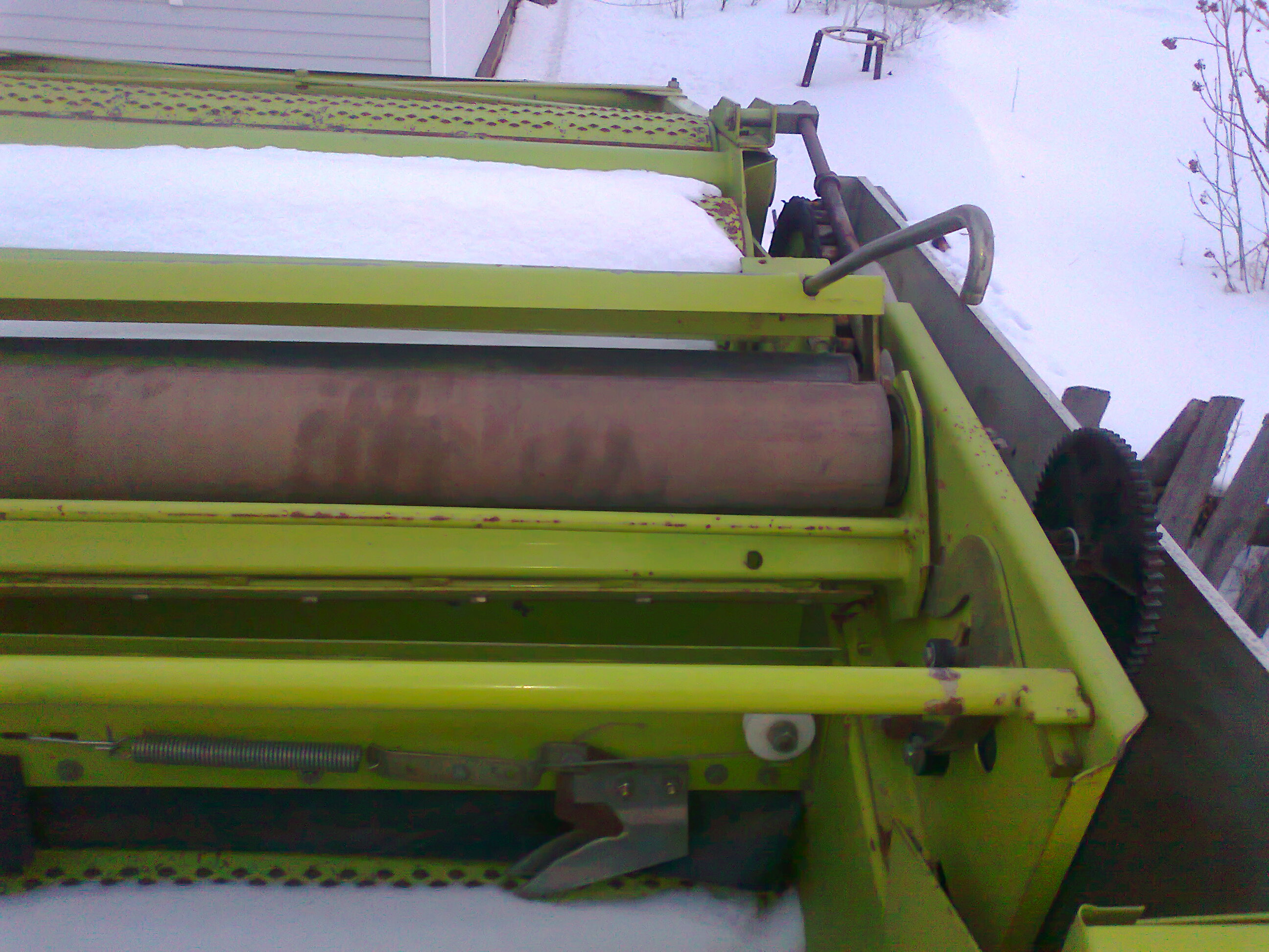 Привод от барабана там шкивок не видно его а завязка от зеленого шкивка наполовину видно который там два провода подходят наверно муфта какая то эл.магнитная и крутит подачу сетки и потом сетка захватывается сеном и быстрее мотает а чтобы не было несоответствия скорости там шкивок на интересном подшипнике стоит он в одну сторону крутится а в др нет. Вот когда сетка пошла шкивок не цепляет вал а просто крутится как обгонная муфта.
