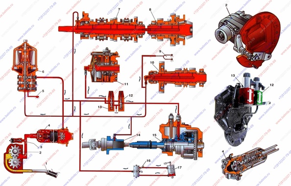 Единый гидробак с отсеками на рулевое и гидравлину установлен на МТЗ 1222.3 под кабиной над КПП, гидронасос с боку КПП, так что в теории может греться по одной причине все вместе