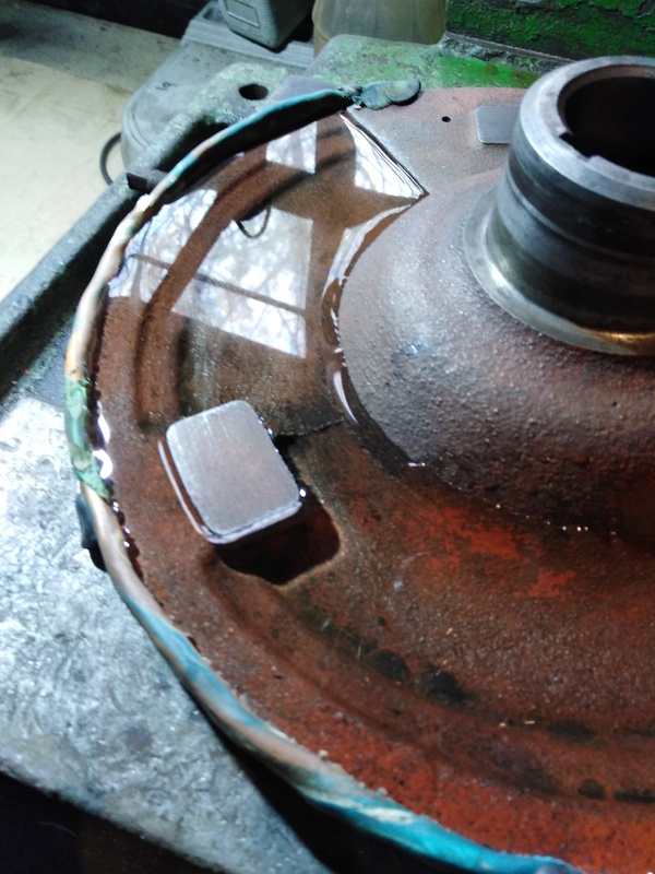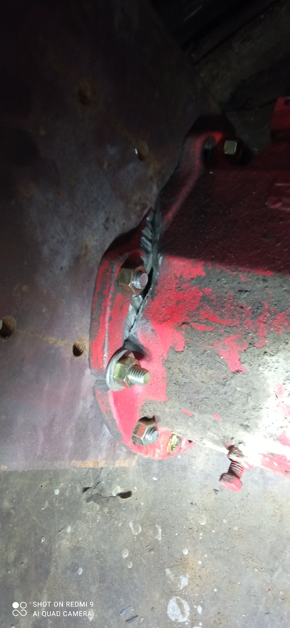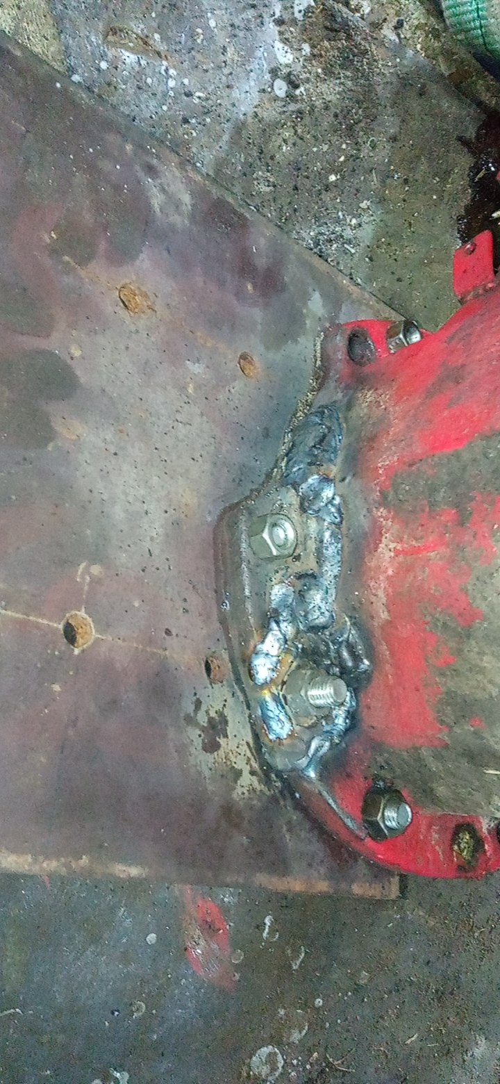 Вот так проглядел шпильки. Отломало кусок. И три шпильки снизу отломало. Варил полуавтоматом. Варится хорошо. Плсмотрим как будет ходить. Шпилек пока нет. Прикрутил на болты, 3 нижних.