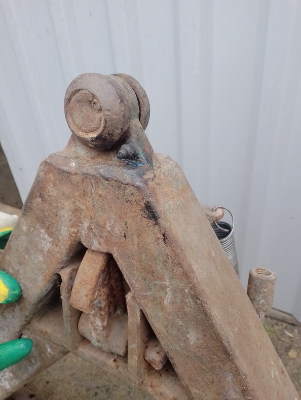 на некоторых агрегатах где палец сложно поставить, приваривал к рамке орудия в 10-15сантимитрах от низа толстые пластинки с отверстием на 10 и через них и отверстие во внутреннем пальце треугольника двумя шпильками на 8 крепил, а то тоже терял спушку , на этой фотке видно, зеленым обвел