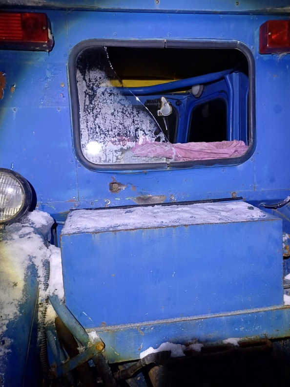 Буксирный крюк грузовичка жак. Пробитие насквозь два листа кабины. Тянулось лебедкой на задней навеске без блоков.