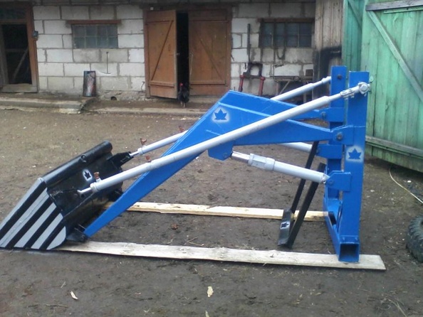Переходная рамка, которая на четырех шарнирах крепится к стреле и копирам. А уже на эту рамку на трёх шарнирах с цилиндром крепится ковш. Выворачивается отдельно от рамки.