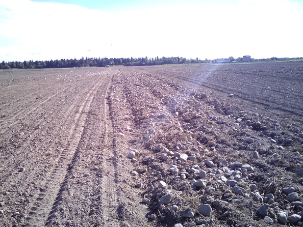 Это старое фото, поле каждый год по немнону убиралось от камней в ручную, а это после камнеподборщика, это ссыпоно после прохода, следующий проход подбирает и грузит в кузов