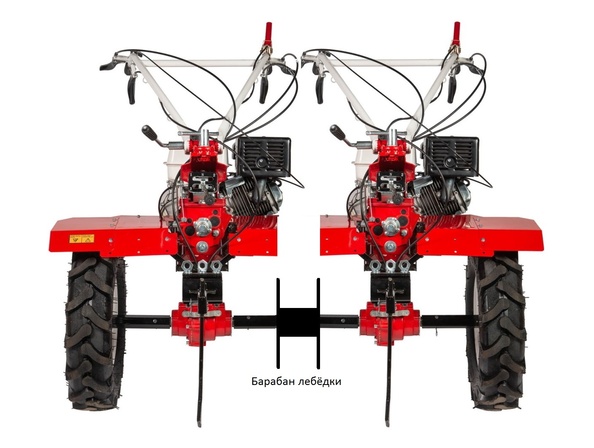 Ещё вариант лебёдки на базе мотоблока - спарка из двух мотоблоков