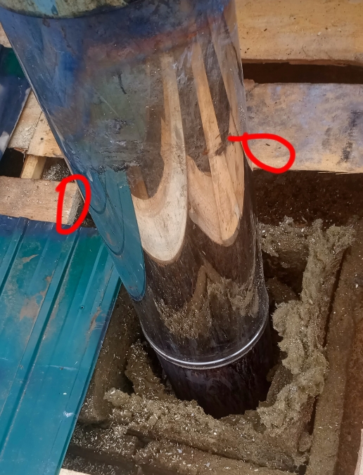 Вокруг трубы был металлический короб с стекловатой, на фото новый короб теперь с базалитом