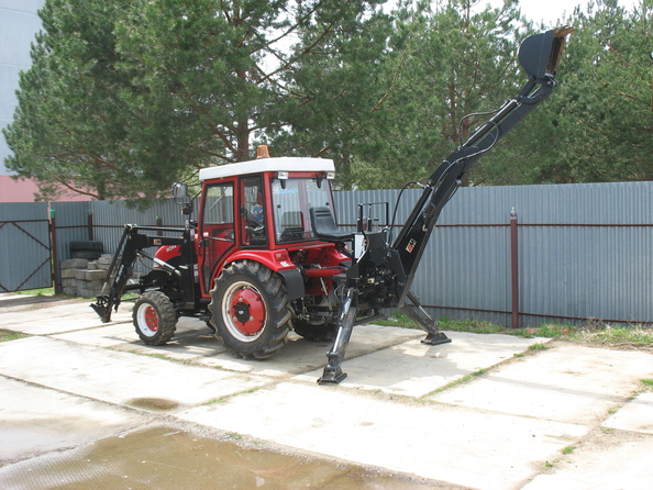 А погрузчик откуда взялся? Ну дааа же если он есть: тоесть вы копаете и складируете вдоль и между стен, строений и т.д. Потом погрузчиком загрузите в прицеп? А не многовато лишней работы и времени впустую? Прицепным сразу грузите в прицеп а прицеп на трактор пристегнут и всегда мобилен.