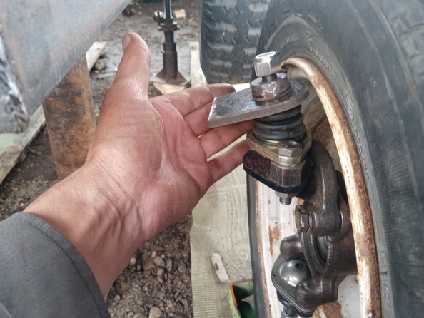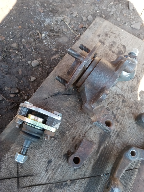 Отрезал от сошки 08,(которрая на сойке) конусную часть. На пластинке просверлил отверстие на 30мм. Конус вошёл как родной! Это будет верхний "рычаг".