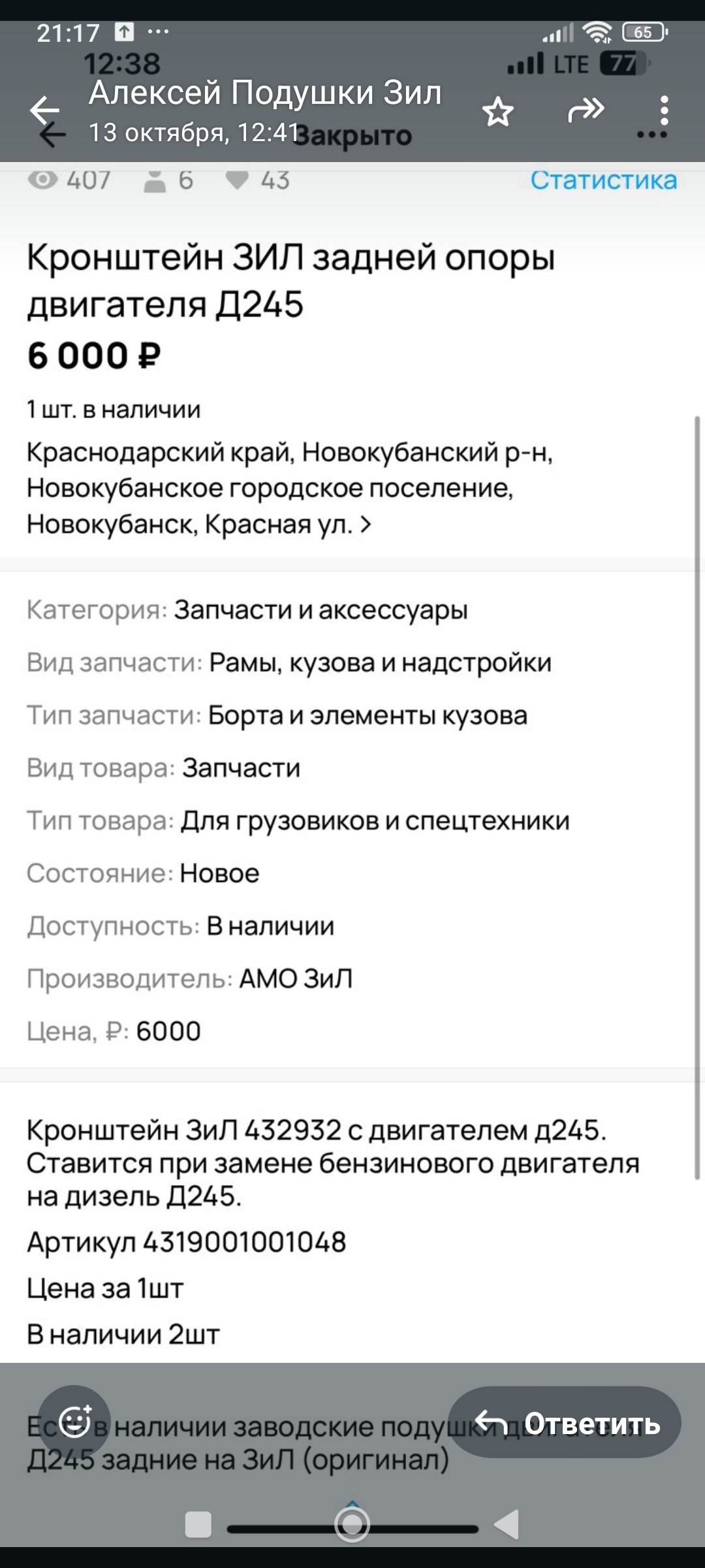Вот купил на разборке кронштейны с Зил Бычок, сразу предупрежу не на всех стоят такие , зависит от года выпуска. Подушки оригинальные заводские Белорусские купил в Краснодаре, Китай за 1-2 тыс. руб ставить нет смысла. Данная подушка очень хорошо гасит вибрацию от двигателя.