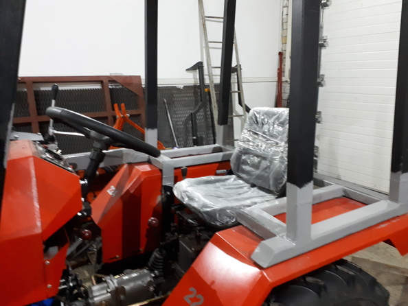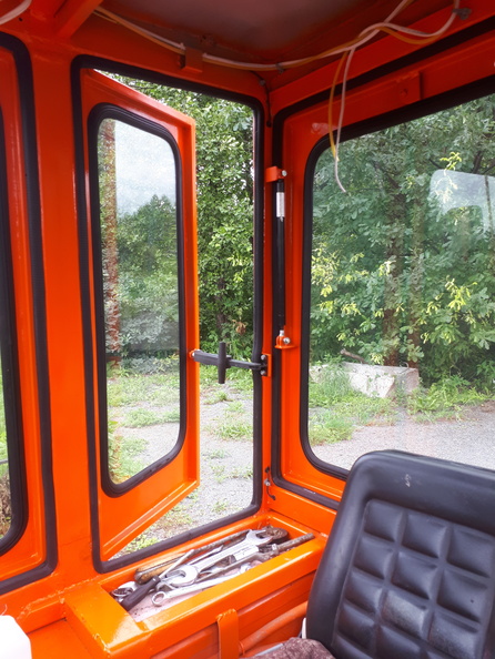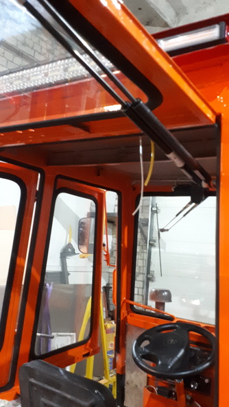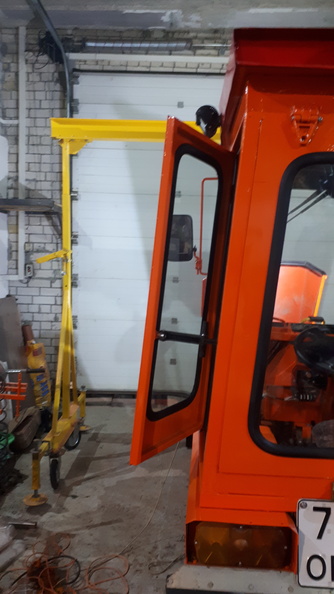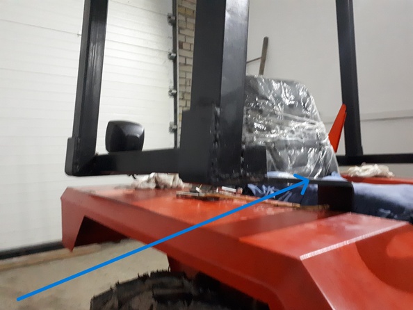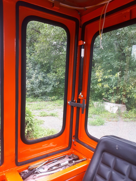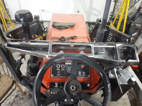 В данном тракторе КУН крепится к кронштейнам установленным на стыке двигателя с колоколом сцепления. Нагрузка от КУНа стремится к "разлому" данного стыка. Кабина закрепленная к этому кронштейну жестко и съемно к заднему мосту снимает часть нагрузки КУНа с данного соединения. И поэтому тоже у меня нет полноценной правой двери. Здесь жесткая связь- балка , повышающая жесткость кабины.