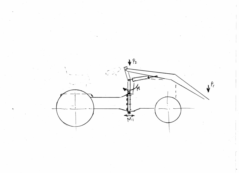 На минитракторе фронтал закрепляется на кронштейнах, которые в свою очередь закреплены на месте стыка двигателя с колоколом сцепления. Рис1. На минитракторе, как впрочем и на МТЗ по моему, рамы несущей нет. Нагрузка с ковша Р1 передается на кронштейн и соединение (двигатель - колокол). Нагрузка Р" вертикальная и Момент изгибающий, закручивающий М. На соединении (стыке) появляется разрывающий момент, который при не особо мощном конструктиве всей линейки: КПП-сцепление-двигатель может разрушать как минимум место стыка. Такие случаи бывают и на МТЗ?