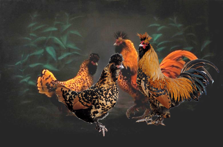 В стандарте 1899 года читаем:" У петуха хохол должен быть бы у корня черноватым, остальная же часть его коричневой, желтой и золотистой. С годами появляются иногда и белые перья, что не считается за важный недостаток. Перья бороды должны быть или совершенно или же почти совершенно черными..."