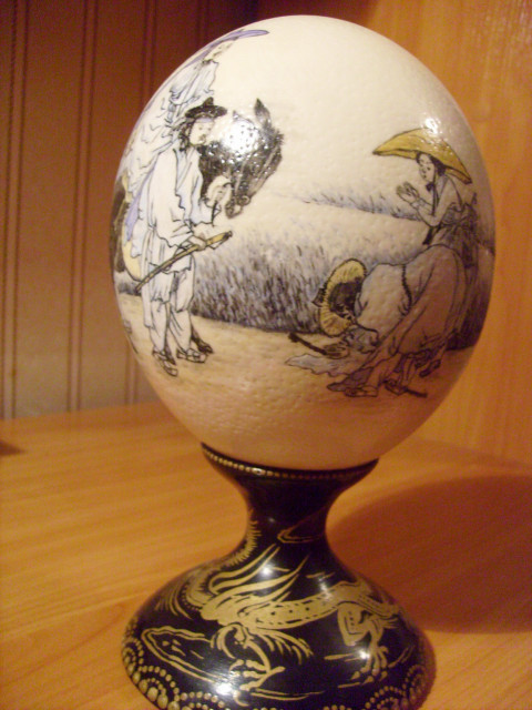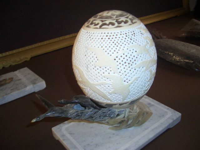 Кроме того, вы можете купить сырое яйцо в магазине, вылить содержимое (для этого придется просверлить яйцо дрелью), и отдать мастеру. Что из этого получается, смотрите сами (это - у меня дома):