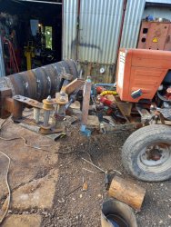 Самая большая проблема при такой конструкции-отсутствие жесткости и очень малая высота подъема отвала. Чем короче ляги подьемной рамы-оси шарнира ближе к отвалу-тем выше можно сделать высоту подъема отвала-а это не самый последний момент в эксплуатации.
