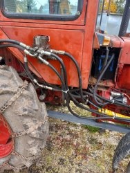 У меня отвал сильно полегче, но и в моем варианте противовес в виде лопаты от ЮМЗ или МТЗ, кардинально меняет картину). Пробовал рулон сена на пику, но с ним сложнее - рулить уже педалями нужно, да и растрепывается.