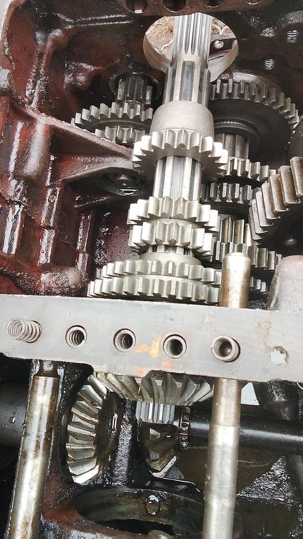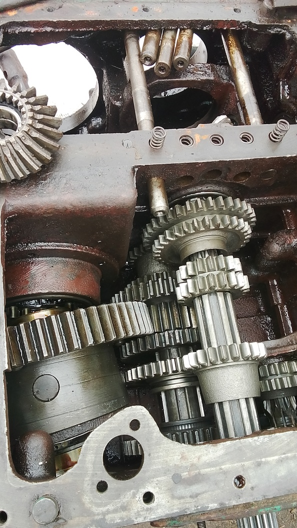 По подшипникам, первичный вал вращается на 2 шариковых подшипниках 407.можно 1 подшипник (в корпусе КПП около реверса) заменить на роликовый 102407. На старых т 40 60х годов так и было, видел в каталоге. Вторичный вал вращается на шариковом 407 и роликовом 102211. Промвал с блоком шестерён задняя - замедленная вращается на шариковом 305 подшипнике и роликовом 102305.