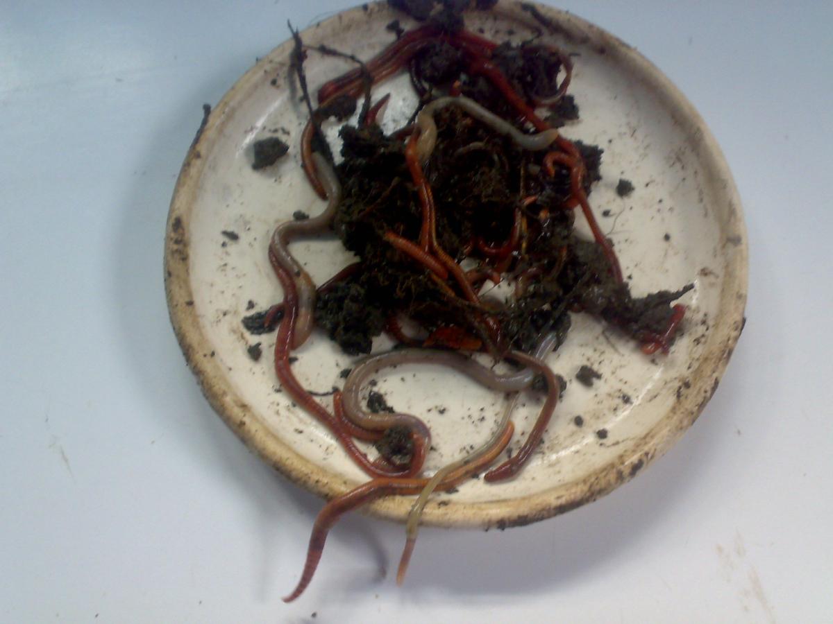 1 - высыпать и выбрать по одному червя. Но это не только гемморно (этого я не страшусь, но если есть смысл), но и наверняка может быть травмоопасно для червя. И потерять многих в этой грязи вполне реально