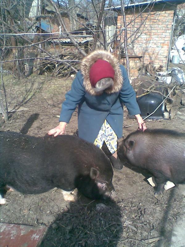 Я тоже к вам присоединяюсь. У меня вьетнамцы: Машки с Васькой по 1год4мес. разница между ними 3 дня как сказал продавец. Молодняку 7 мес. Рядом с хрюшами моя мама. Машка посветлее. Васька черный.