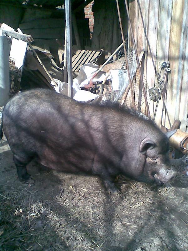 Вьетнамцев много разновидностей, нормальное чудо. Какой возраст? У нормальных молодых хряков пузо по земле не волочится. Ноги как ноги, правда по фото трудно определить размер хряка и длину ног, встаньте рядом с ним тогда видно будет. И свинку щелкните. Мне нравится он. Хотя больше люблю черных.