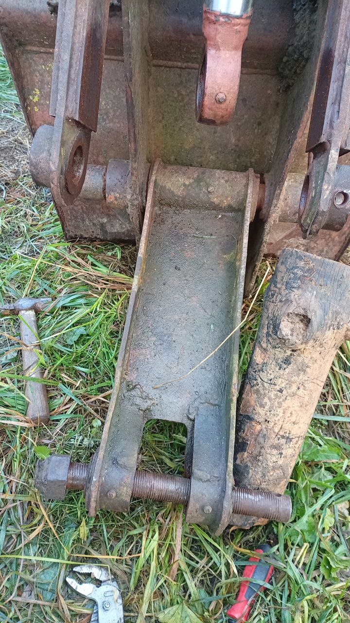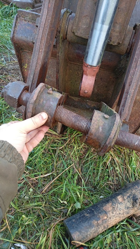 Всем привет. Два дня на тракторе работал. Закапывал яму. Это мой первый опыт! Было куча мелких поломок. Но все удалось устранить(иногда звонил дяде Васе). Псоветуйте пожалуйста как можно выгнуть этот кронштейн. Я его и пропановой горелкой грел(резака нет) и кувалдой бил. Болт туда не я ставил. Так и было. Палец и втулки купил нормальные но не входит никак.