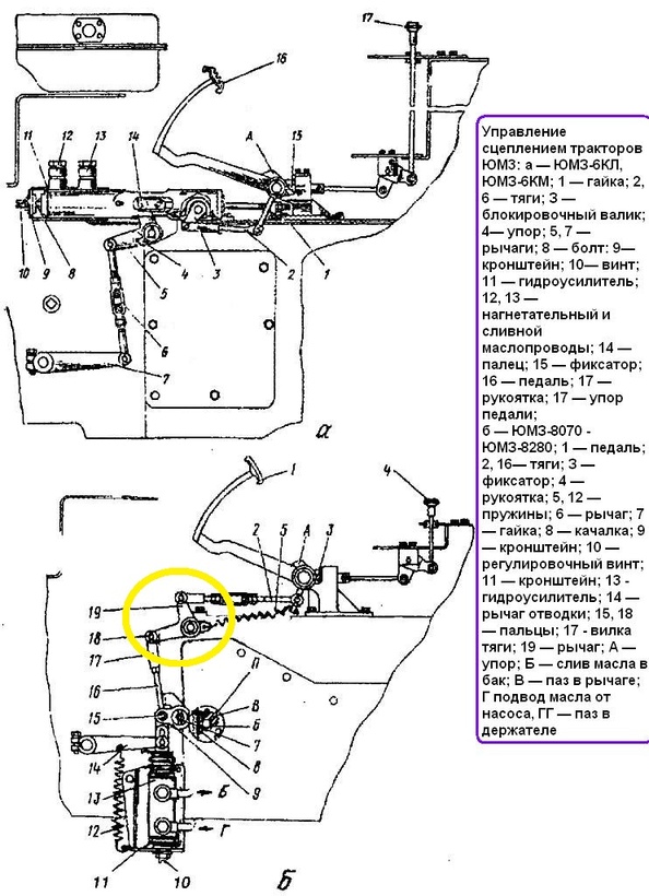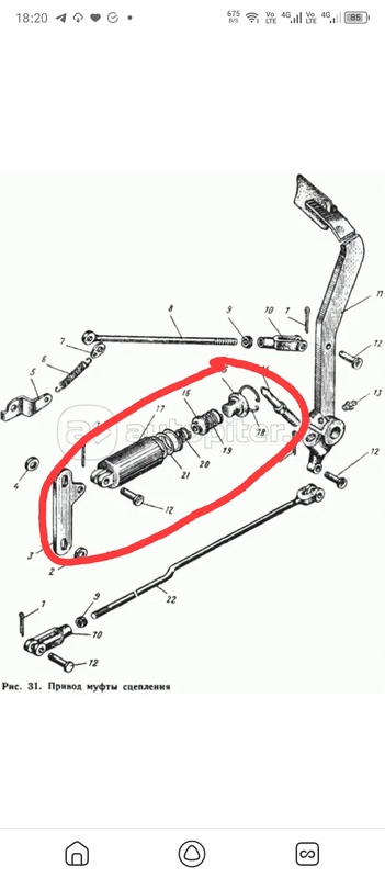 Здравствуйте. Недавно пропал выжим сцепления. Помог Ламич. Консультировал по телефону. Когда домой приехал решил заменить лапки. Сильно спилены. Отпустил тягу с педали и увидел, что педаль из-за пружины в выжатом положении. Что бы поднять педаль, нужно преодолеть сопротивление пружины. Кронштейн крепления стакана с пружиной стоял вверх ногами. Много лет не замечал, пока не встал у соседа прямо в воротах. Сейчас всё в порядке.