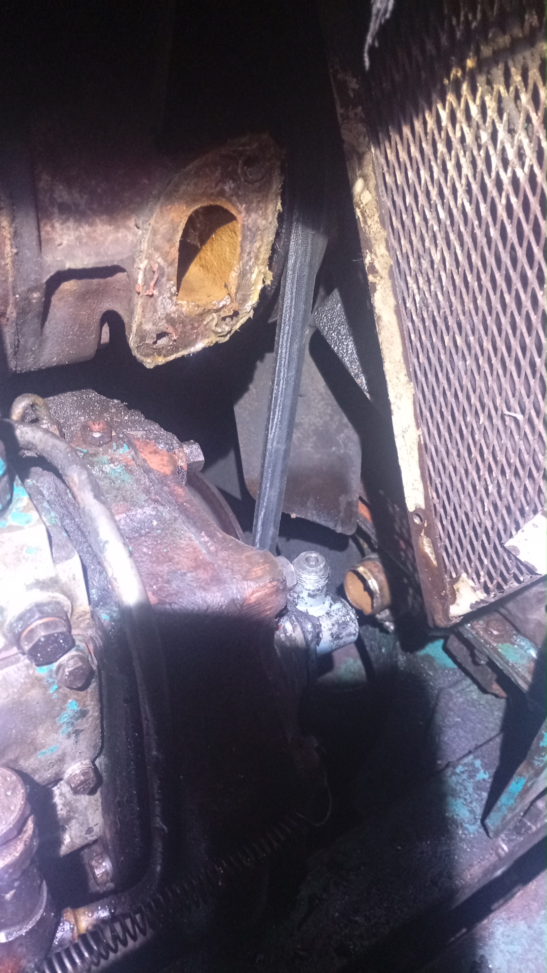 Пошел перегонять трактор в ремонтную зону которую огородил и решил покататься и деревья покорчевать немного. Чувствую запах какой то странный. Вышкл смотрю вода ручьем течет откуда то из под крантика радиатора. Индикатор температуры не показывает те пературу. Решил разбирать. Тяжело к крантику подлезть и я решил сверху этот патрубок откручивать. Кое как выаернул крантик. Но потом решил что может дело и в штуцере тоже. Решил открутить посмотреть. Но он развалился от откручивания.