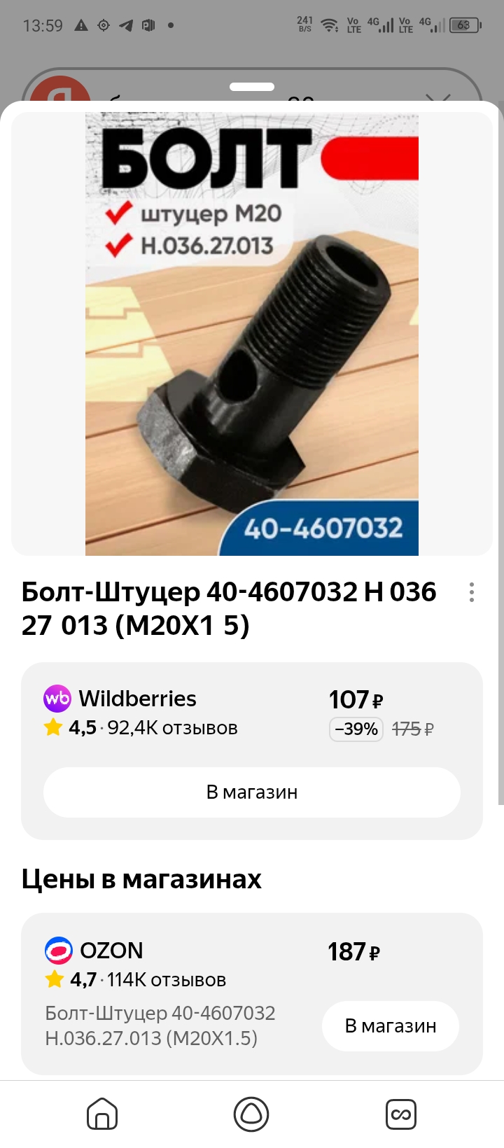 я понял про токаря. Он есть в соседней деревне. Но непростой чел. Че то трубку не брал когда я в прошлый раз звонил. Мне так и сказали что он сложный человек. Но к нему отовсюду люди ездят. Вы не ругайтесь, я просто не знал что такой болт это какая то редкость. Раз все равно везти токарю, тогда я не буду никакие патрубки покупать. Закажу этот болт и закажу штуцер. И все отвезу токарю. Спасибо что помогли разобраться. Я б сам тут точно запутался. В магазах этих еще ниче не знают