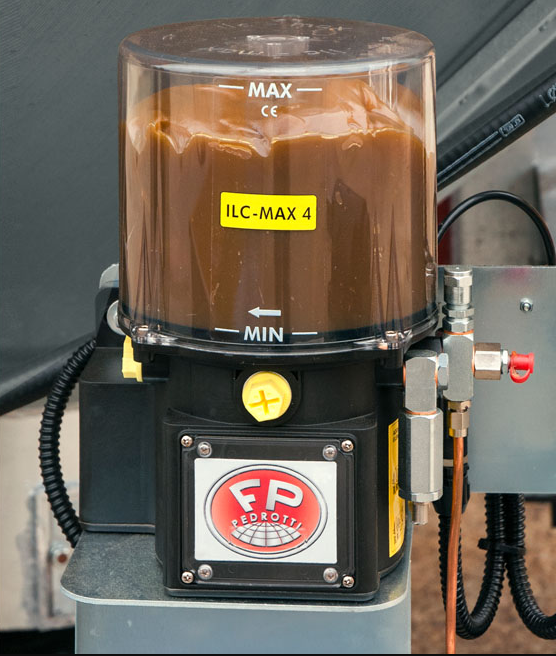 Вот такая штука. Операторы молятся на нее, вообще голова не болит в начале смены, что что-то забыл смазать. Насос через определенные промежутки времени сам смазывает все узлы зерносушилки.