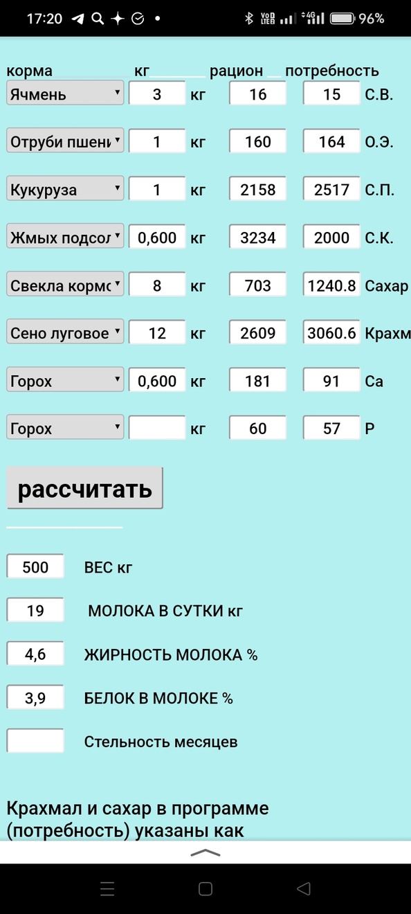 Правильно ли я рассчитываю по-вашему колькулятору для своей коровки