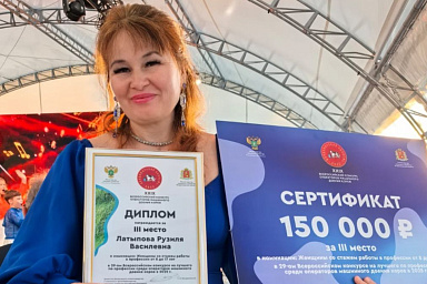 В номинации «Женщины со стажем работы в профессии от 8 до 17 лет» 3 место заняла Рузиля Латыпова из Республики Татарстан. Ей вручен сертификат на 150 тыс. рублей.